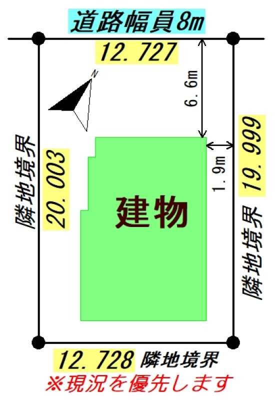 | 地積状況 | 平坦 北西側が幅員8.0mの公道に間口12.727m接している |