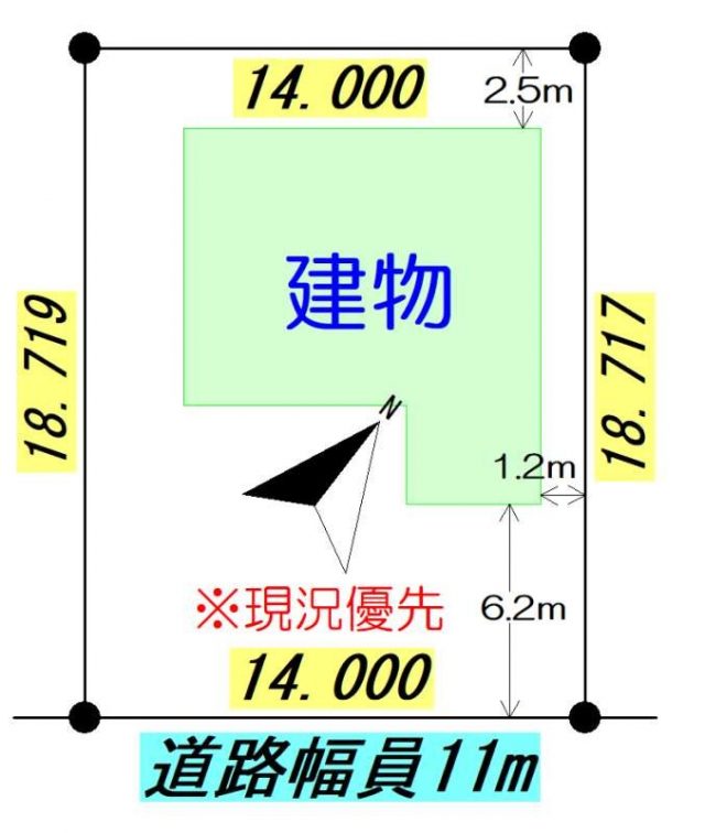 地積状況 | 平坦 南東側が幅11.0mの公道に間口14.000m接している |