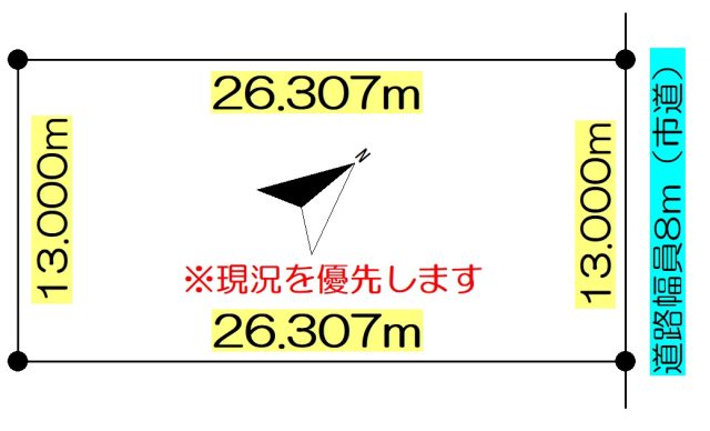| 地積状況 | 平坦 北東側が幅員8.0mの公道に間口13.000m接している |