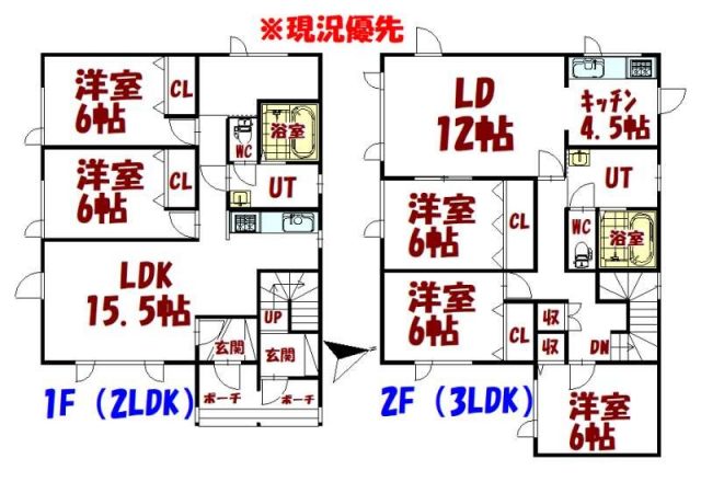 | 間取/戸数 | 1F:2LDK 2F:3LDK |