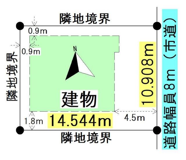 | 地積状況 | 平坦 東側が幅員8.0mの公道に間口10.908m接している |