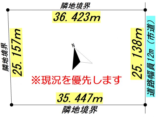 | 地積状況 | 平坦 南東側が幅員12.0mの公道に間口25.138m接している |